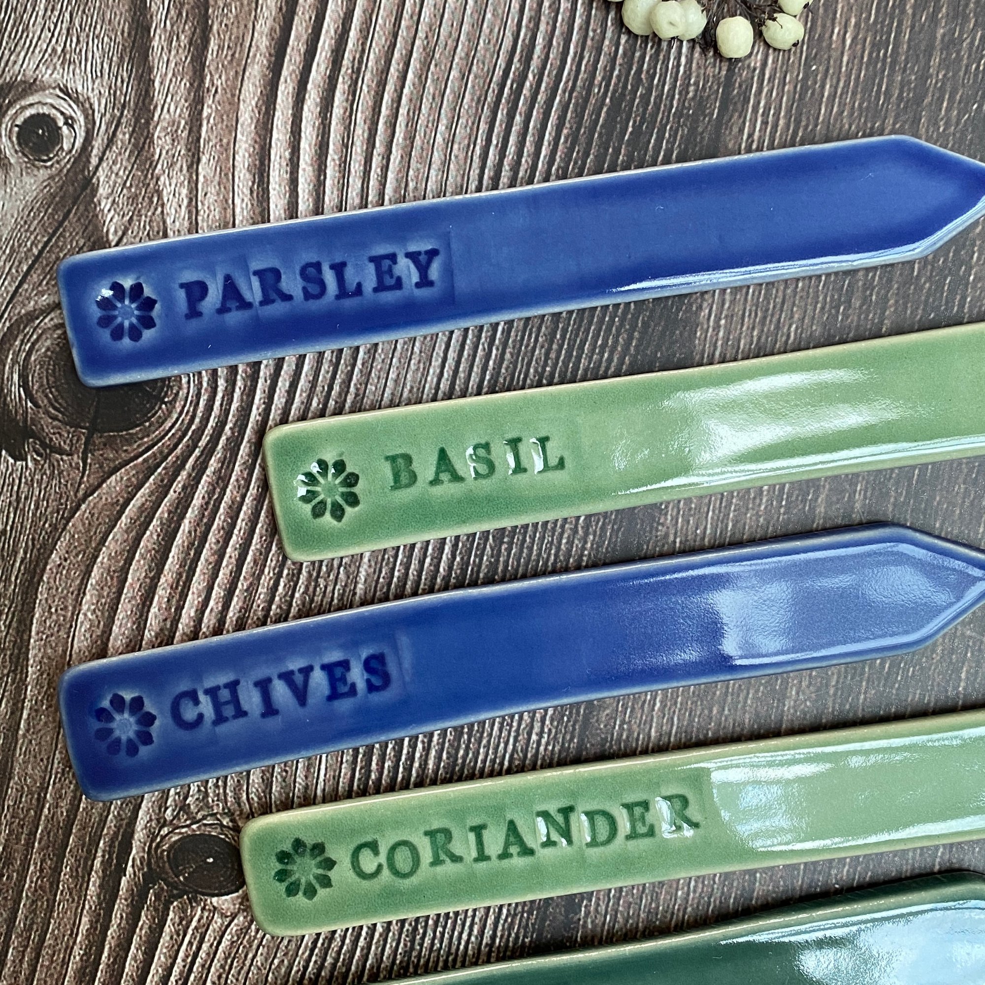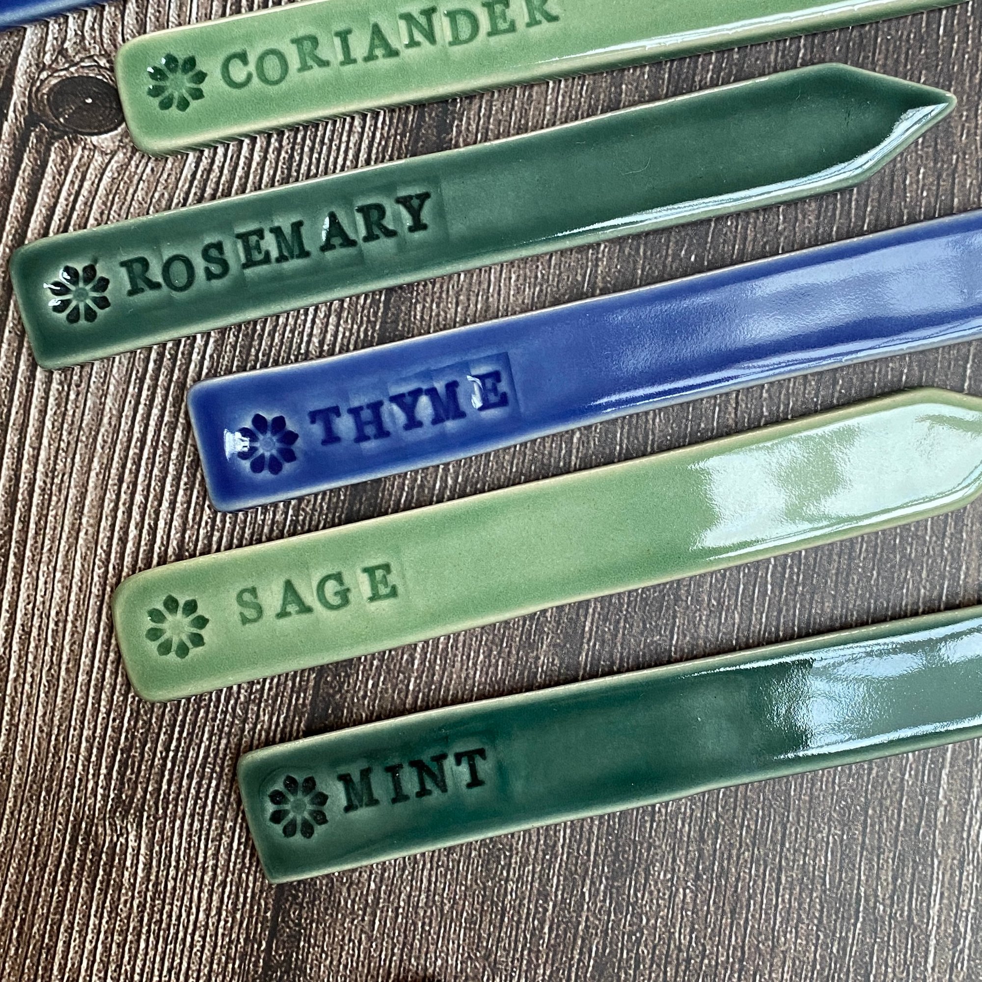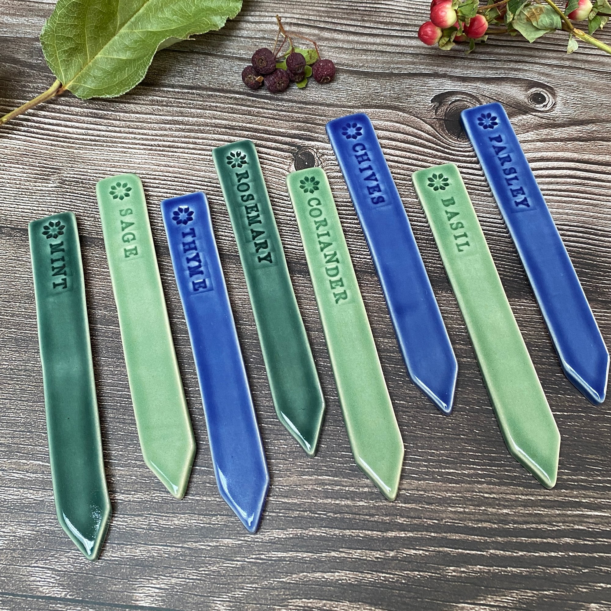 I have made these herb plant markers using creamy stoneware clay and shiny green and blue glazes.