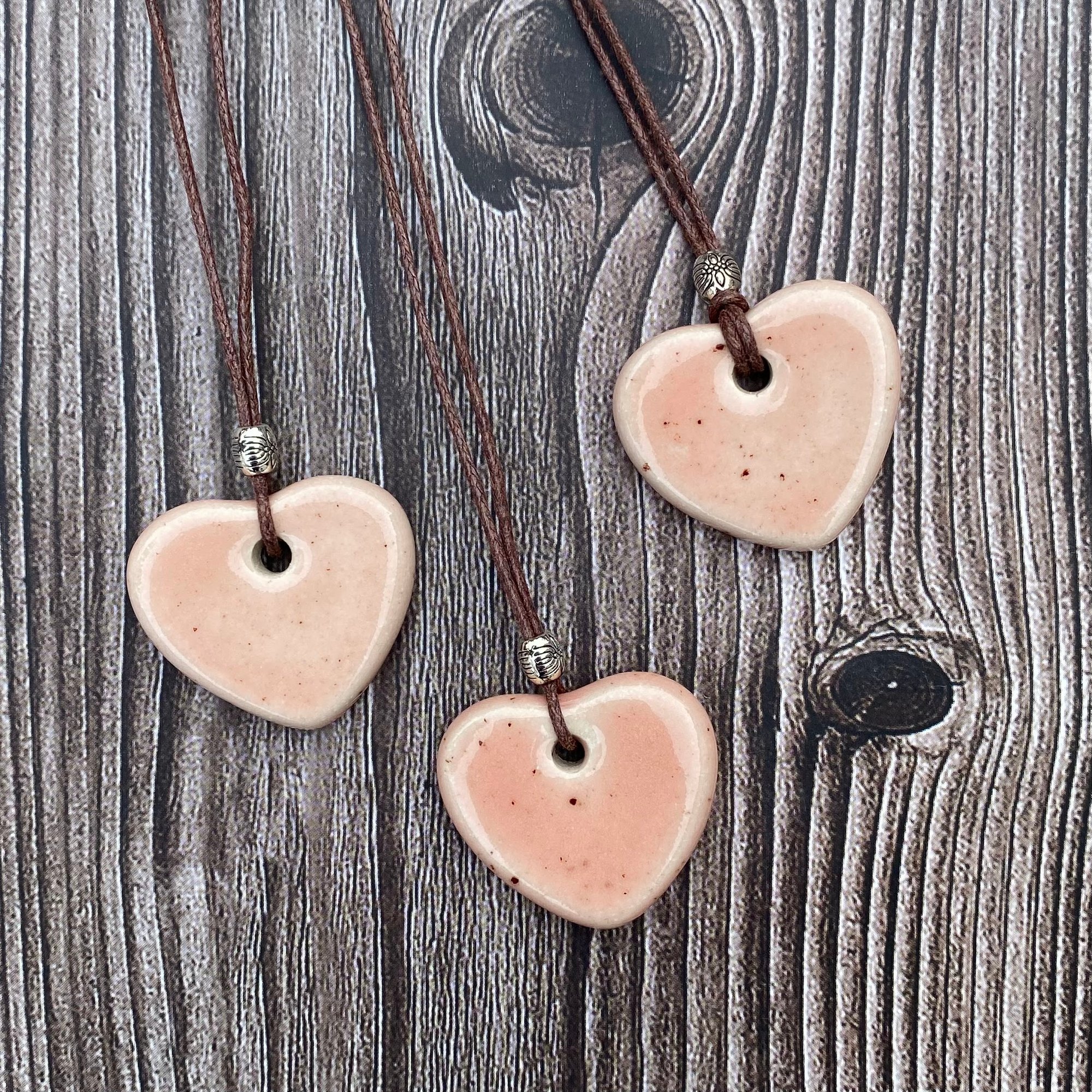 Ceramic Speckled Pink Heart Pendant/Necklace