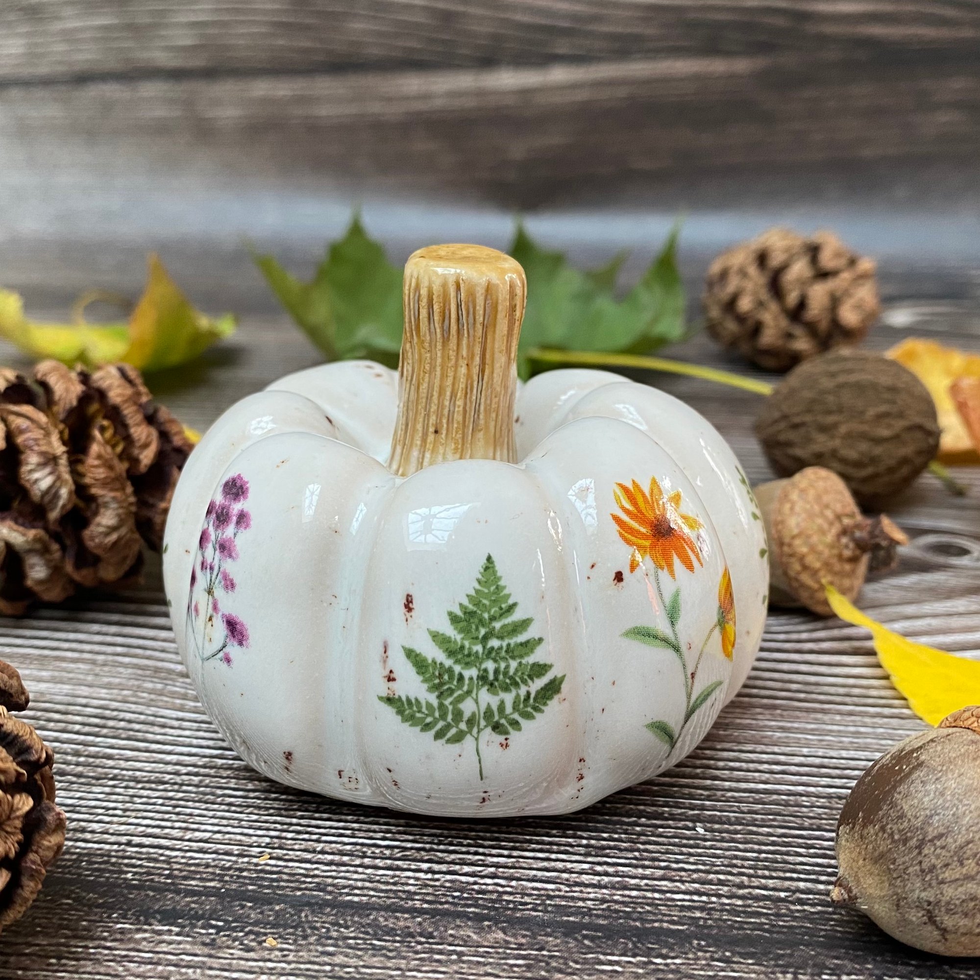 Handmade Ceramic Pumpkin with Wildflower Decals