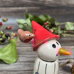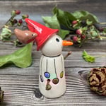 This adorable handmade snowpeep is crafted from white clay and features a shiny red hat with a cute robin. All around the body this snowpeep has a rainbow of baubles. Each piece is glazed with a variety of shiny finishes and fired twice in my ceramic kiln for durability and shine. The snowpeep’s arms are made from brown paper-covered wire, carefully glued in place. For safe packaging, the arms will arrive flat against the body and can easily be adjusted upon arrival.