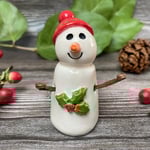 Handmade Ceramic Holly Snowpeep with Red Bobble Hat