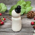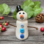 Handmade Ceramic Snowpeep with Black Hat/Blue Buttons