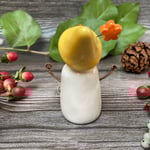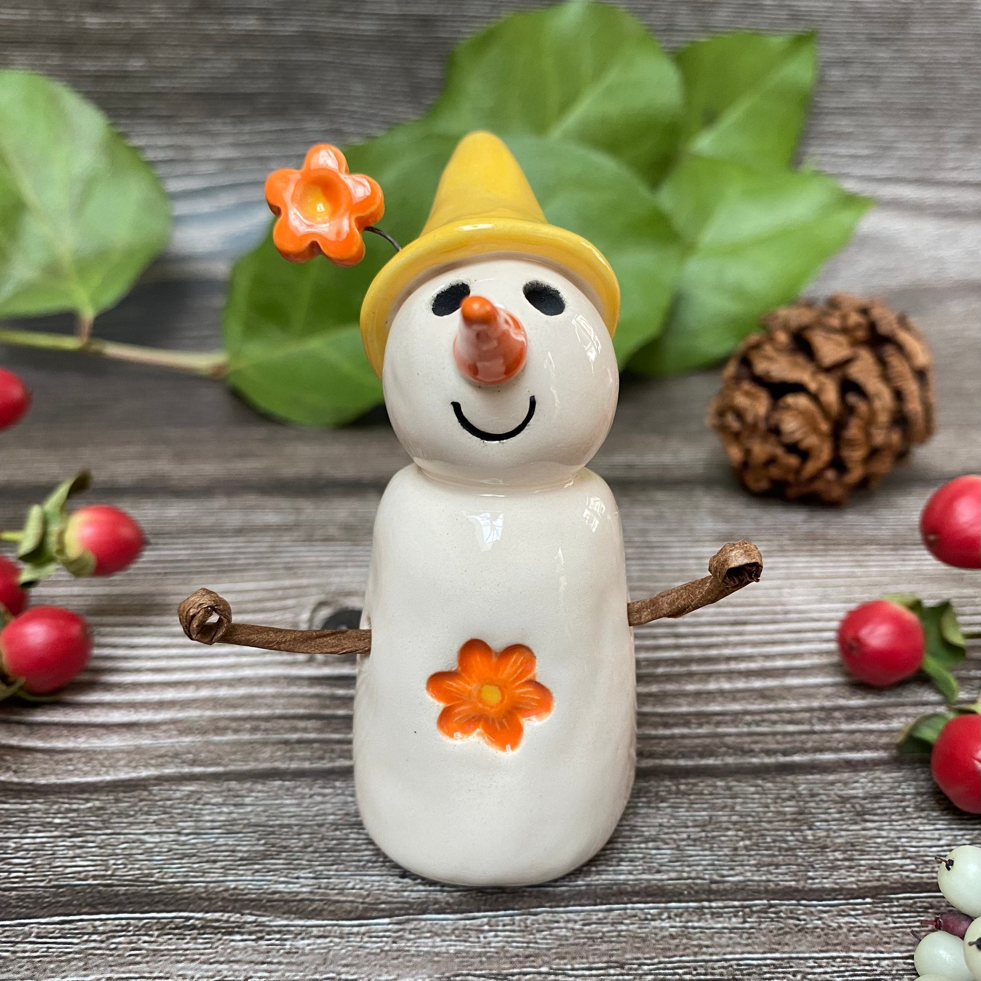Handmade Ceramic Snowpeep with Yellow Hat/Orange Flowers