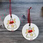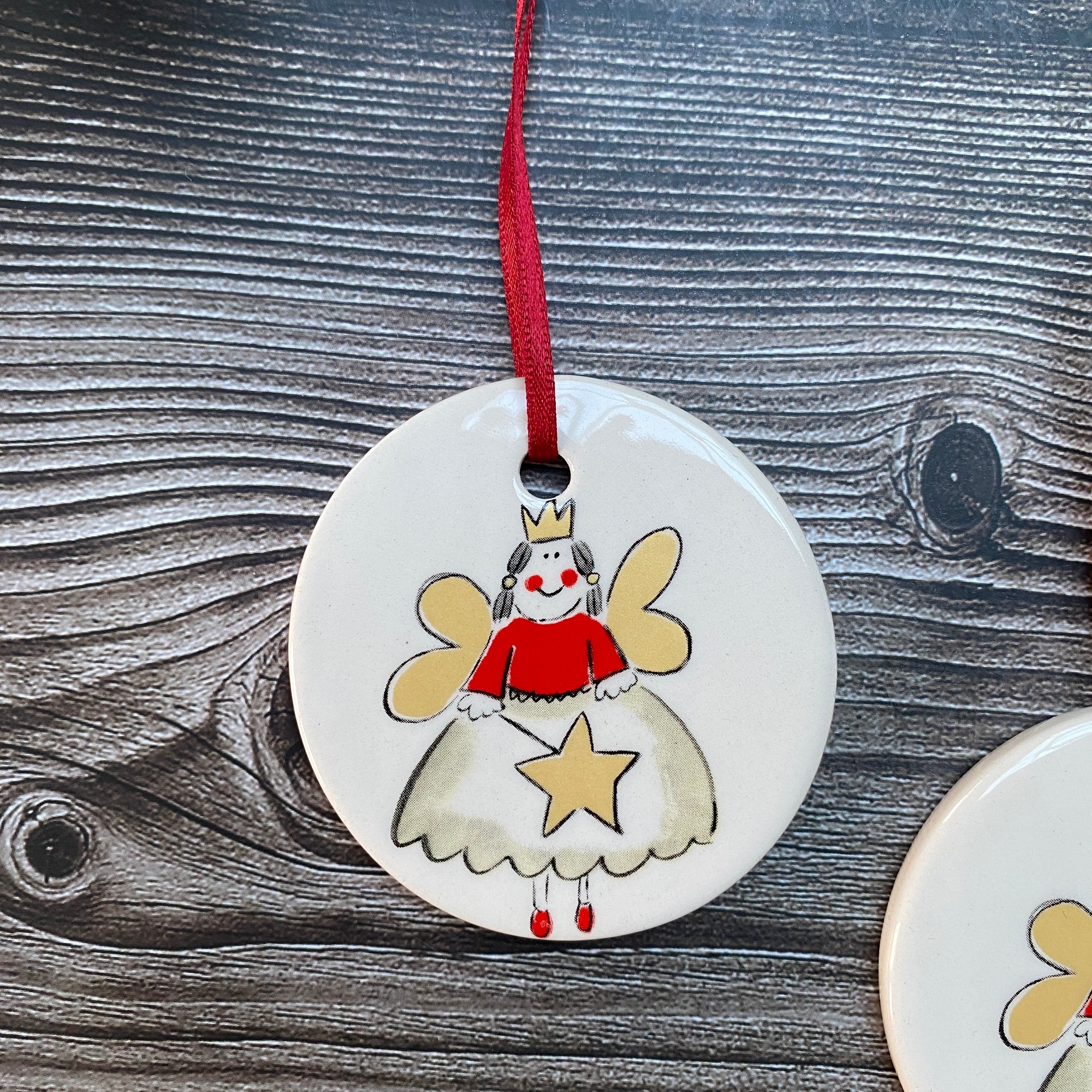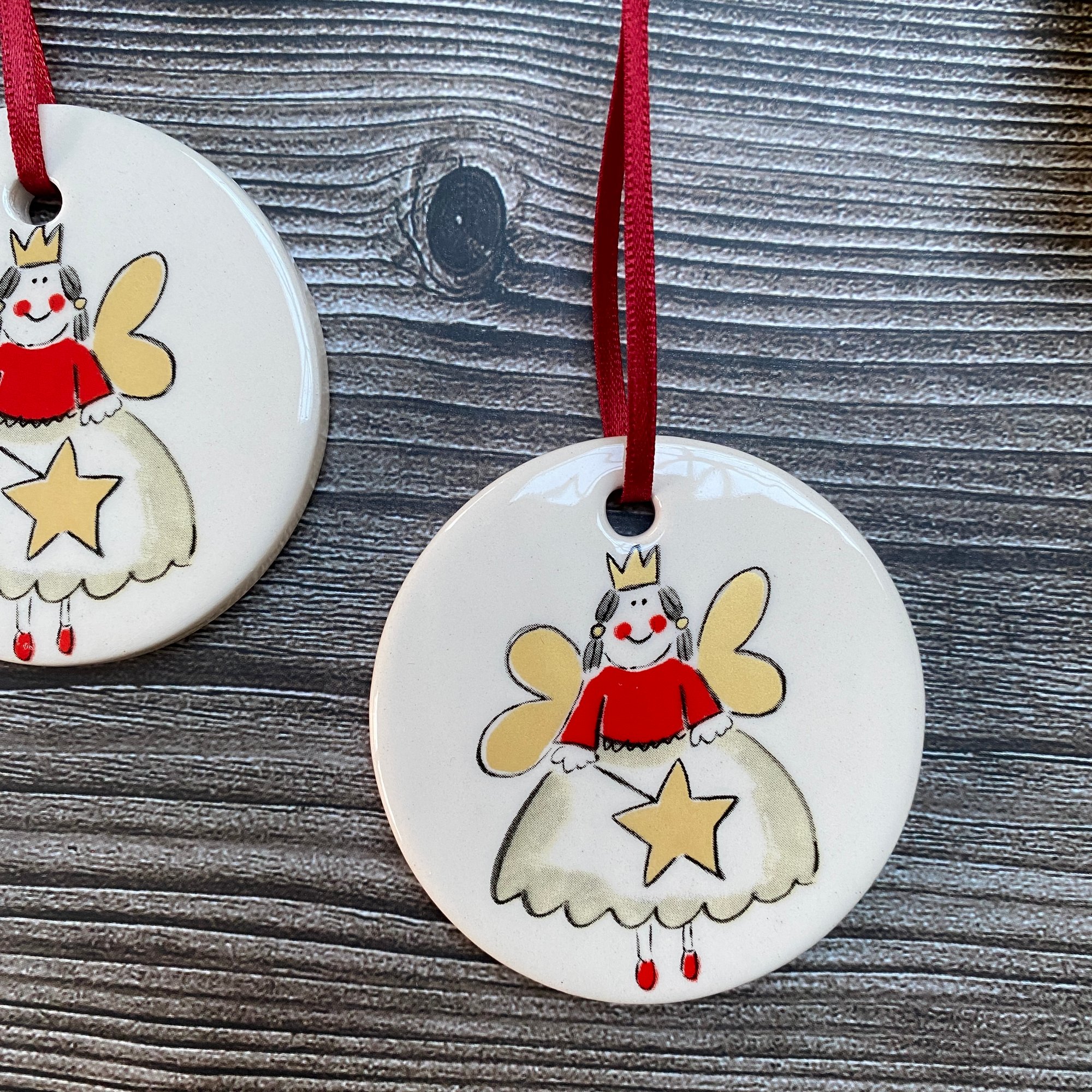 Add a touch of handcrafted charm to your festive décor with these ceramic Christmas tree ornaments. Lovingly made from earthenware clay, each decoration is finished with a transparent glaze before a Christmas Fairy decal is applied and they are fired for a THIRD time in the ceramic kiln.