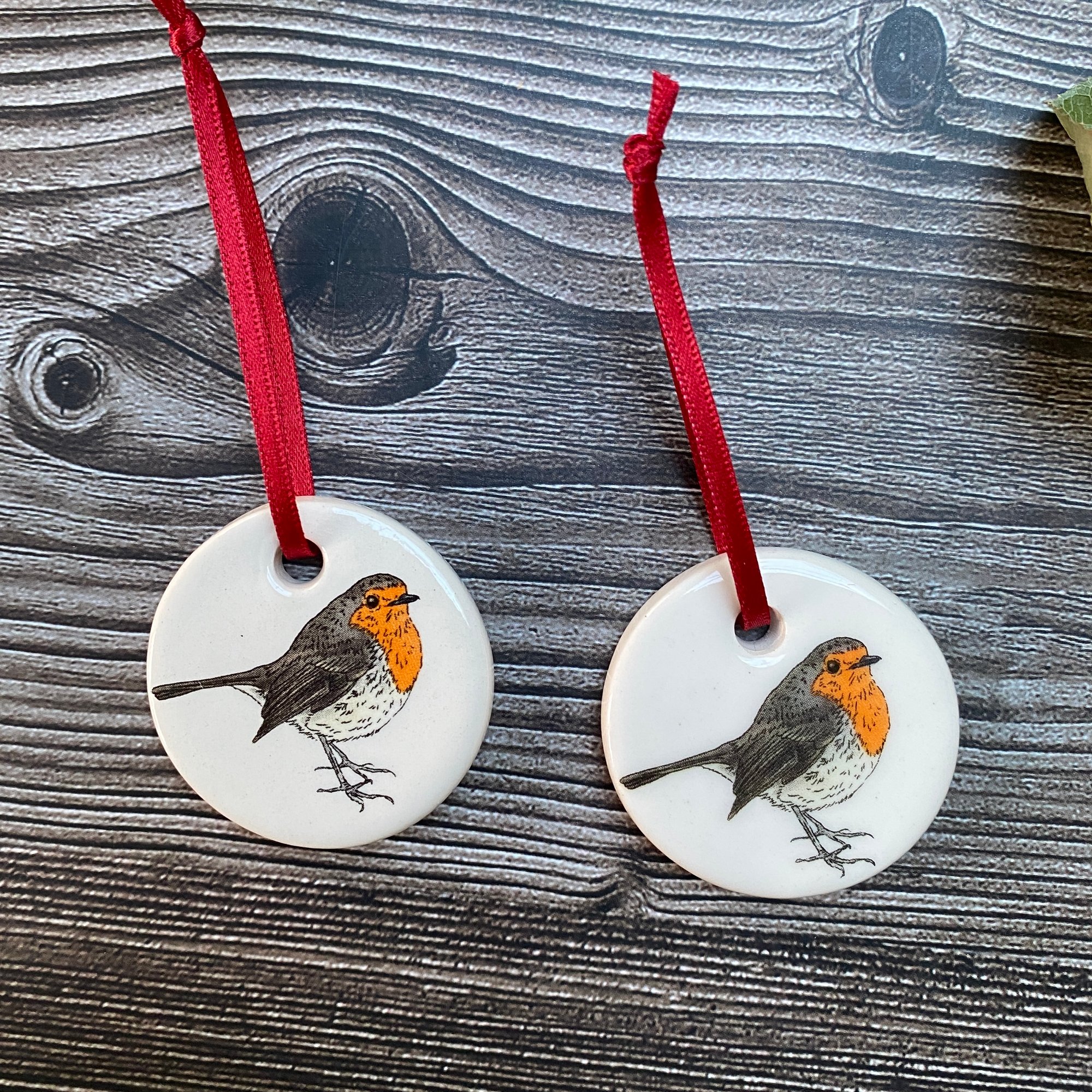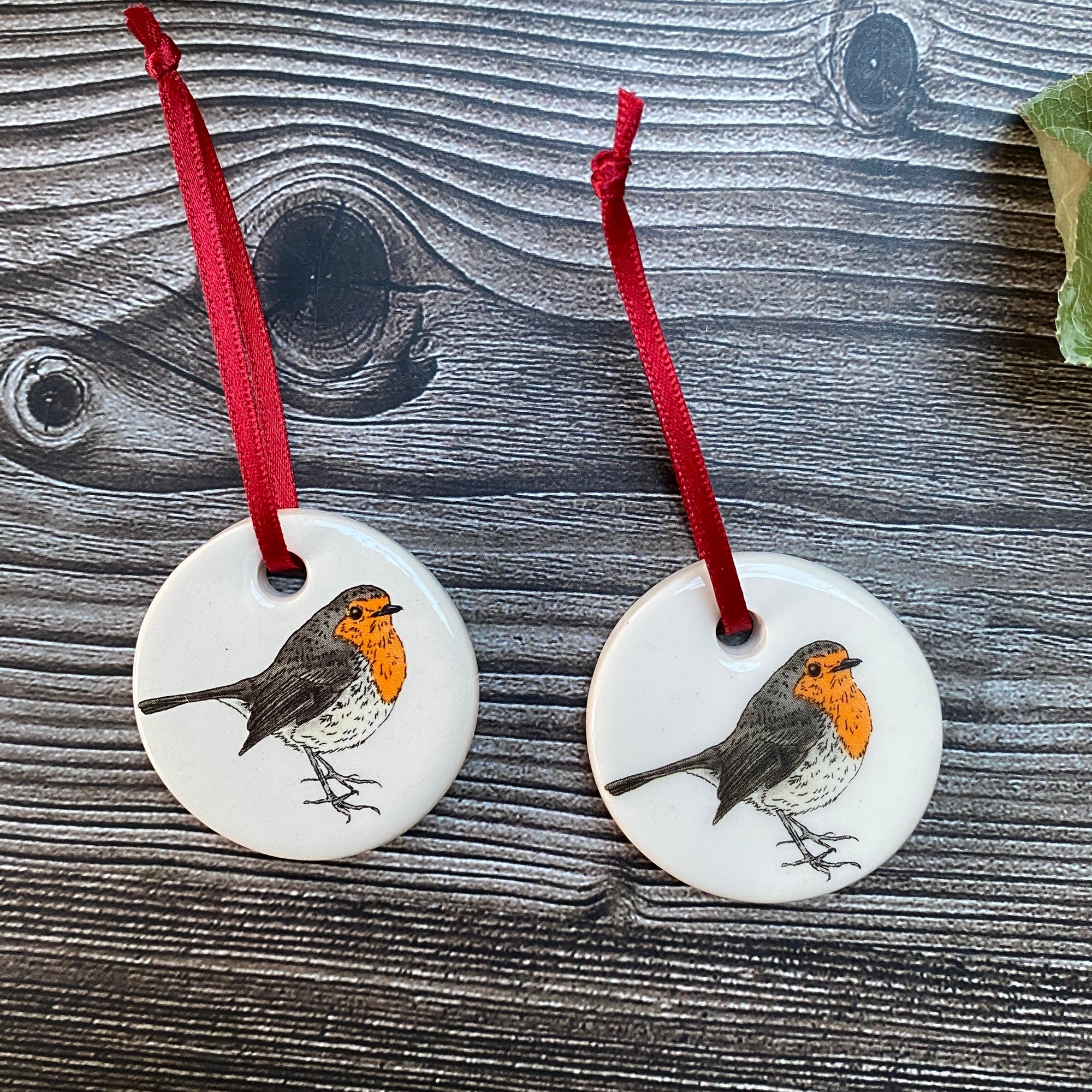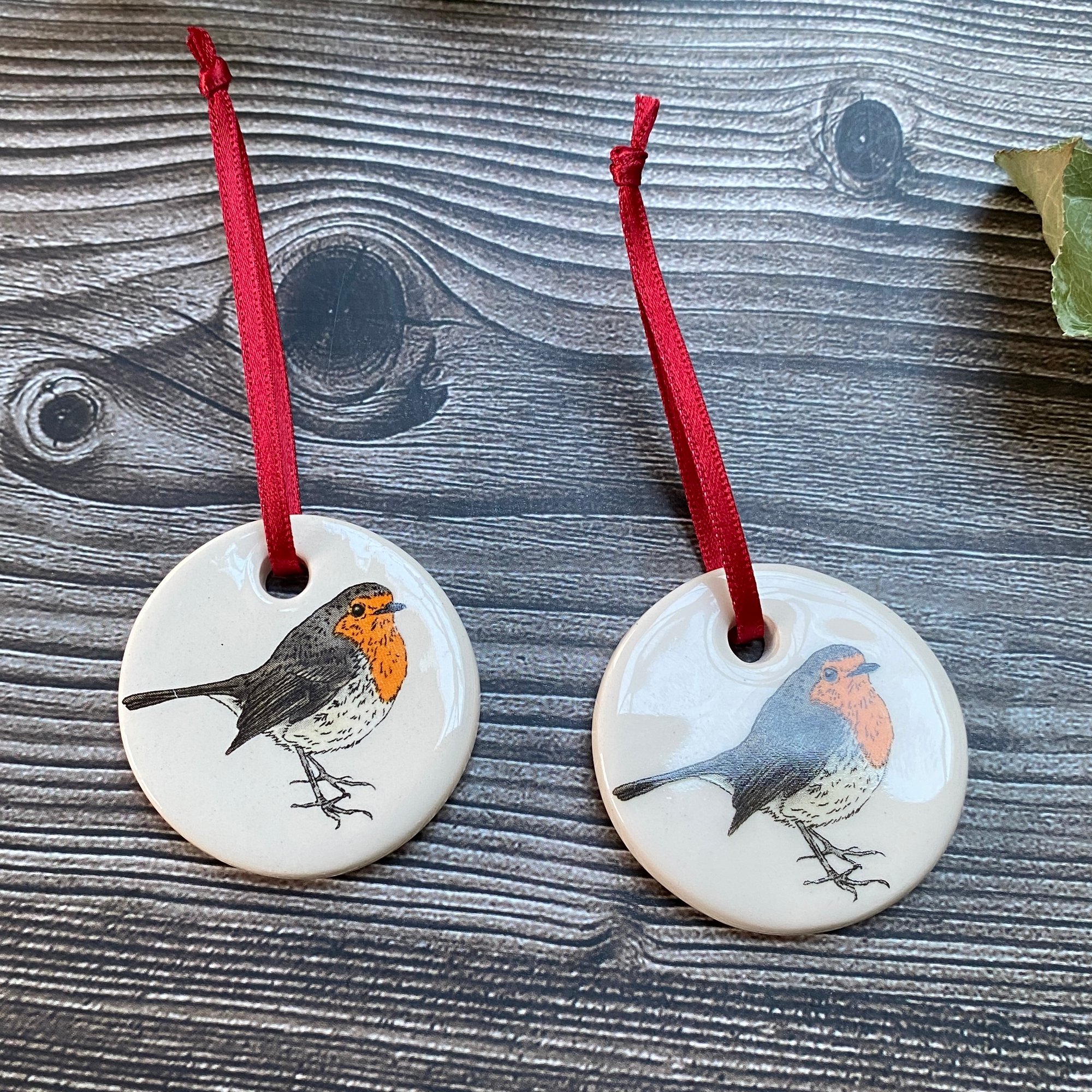 Add a touch of handcrafted charm to your festive décor with these ceramic Christmas tree ornaments. Lovingly made from earthenware clay, each decoration is finished with a transparent glaze before a Christmas Robin decal is applied and they are fired for a THIRD time in the ceramic kiln.