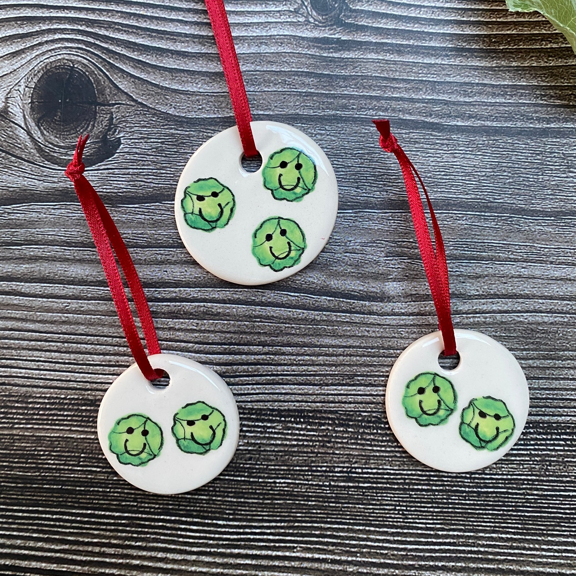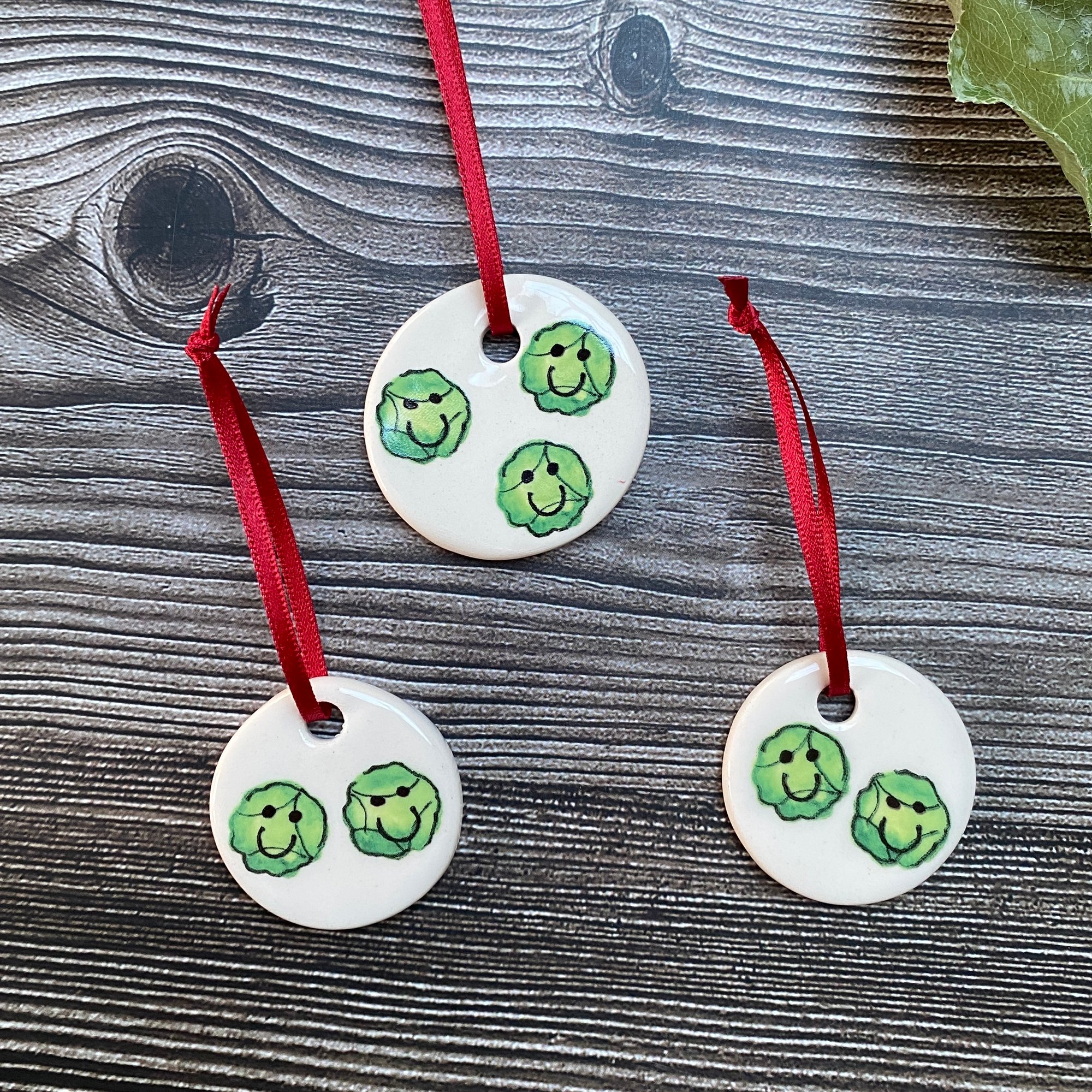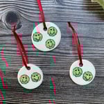 Add a touch of handcrafted charm to your festive décor with these ceramic Christmas tree ornaments. Lovingly made from earthenware clay, each decoration is finished with a transparent glaze before friendly sprouts decals are applied and they are fired for a THIRD time in the ceramic kiln.