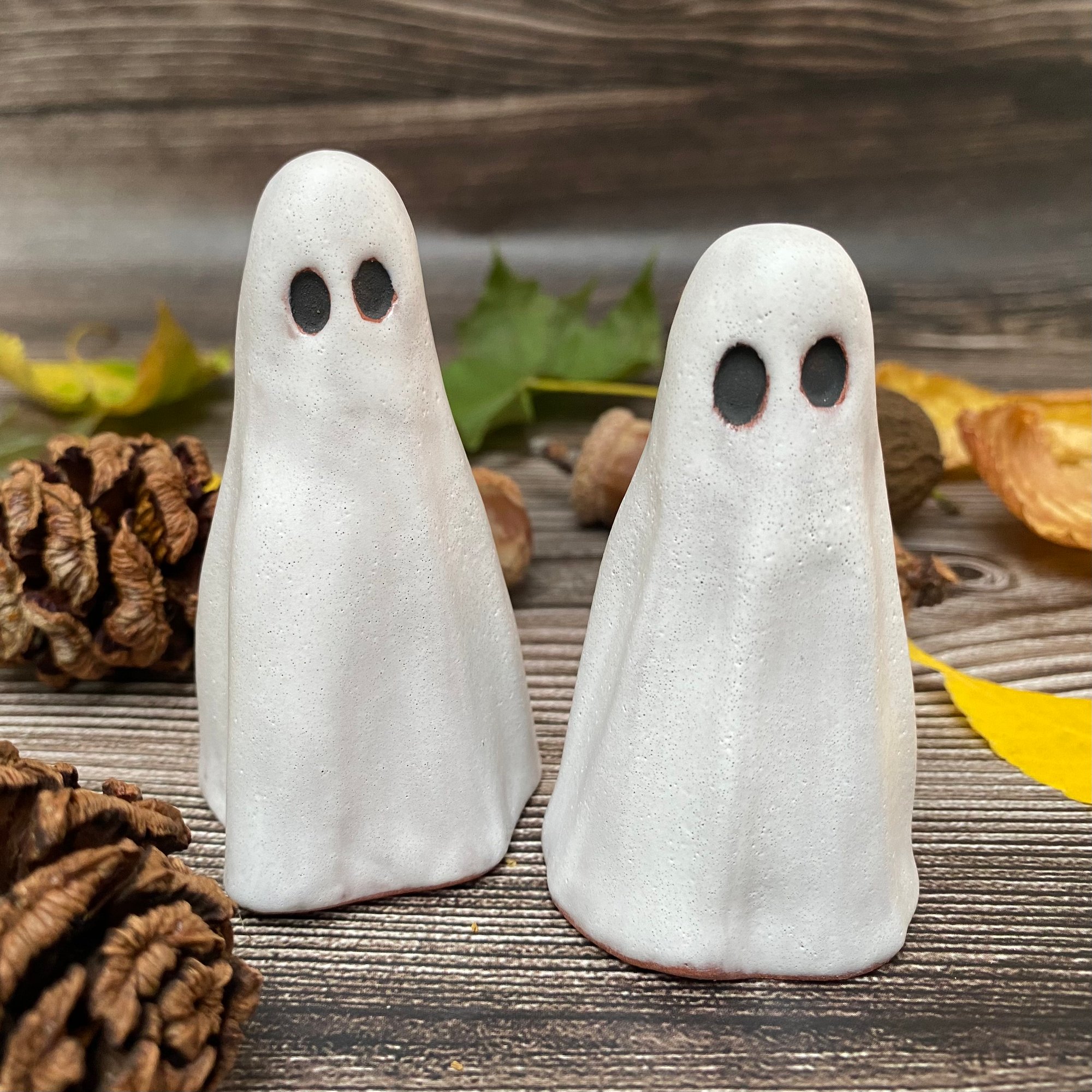 These matte white ceramic ghosts are handcrafted from terracotta clay. Each piece is carefully formed by hand and fired twice in the kiln for strength and durability.