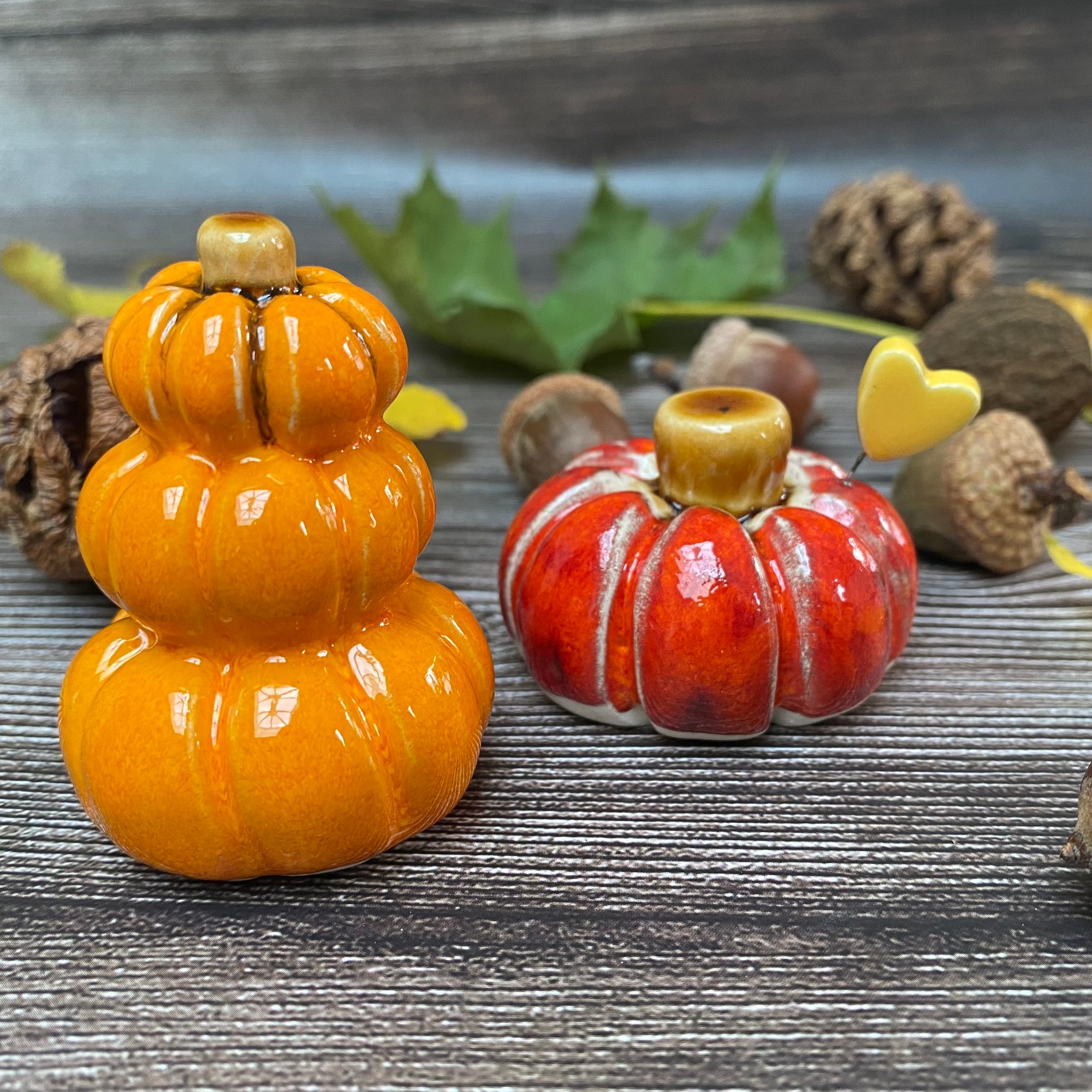 Handmade Orange/Red Ceramic Pumpkins