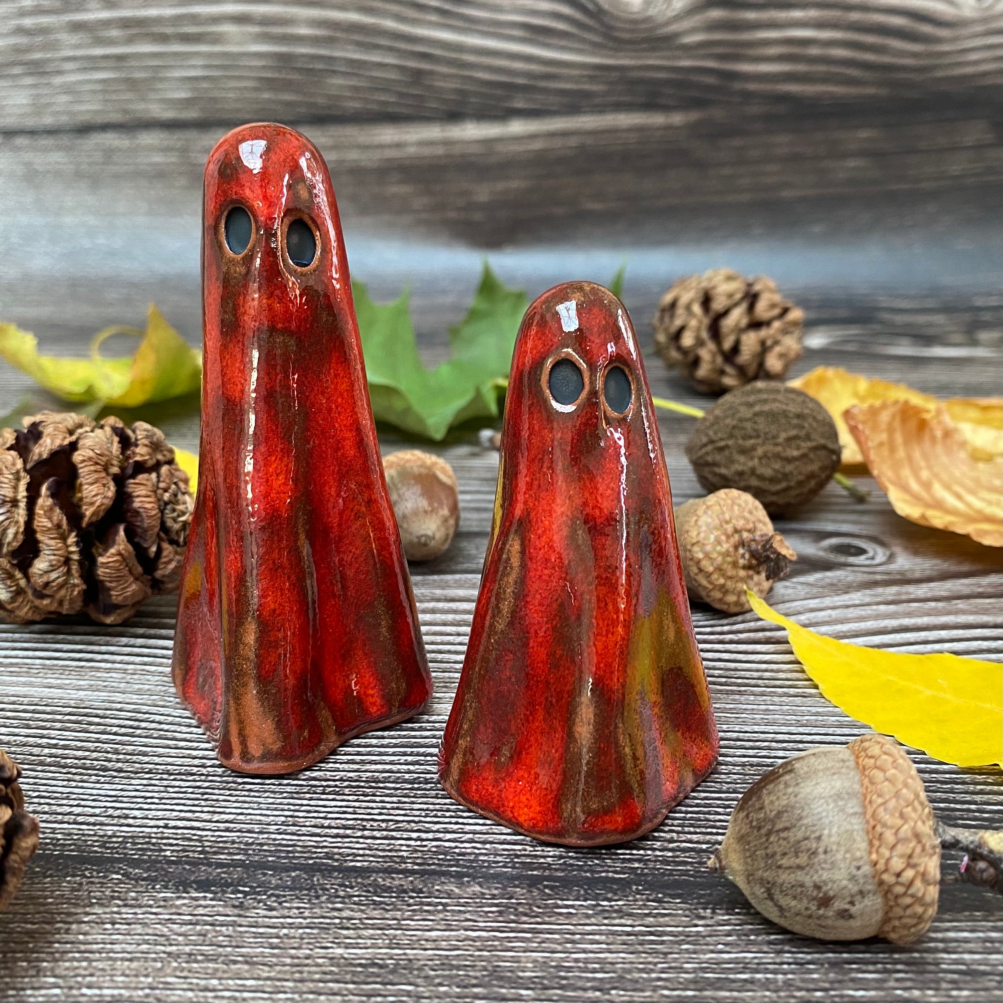These richly coloured red ceramic ghosts are handcrafted from terracotta clay and finished with a glossy red glaze. Each piece is carefully formed by hand and fired twice in the kiln for strength and durability.