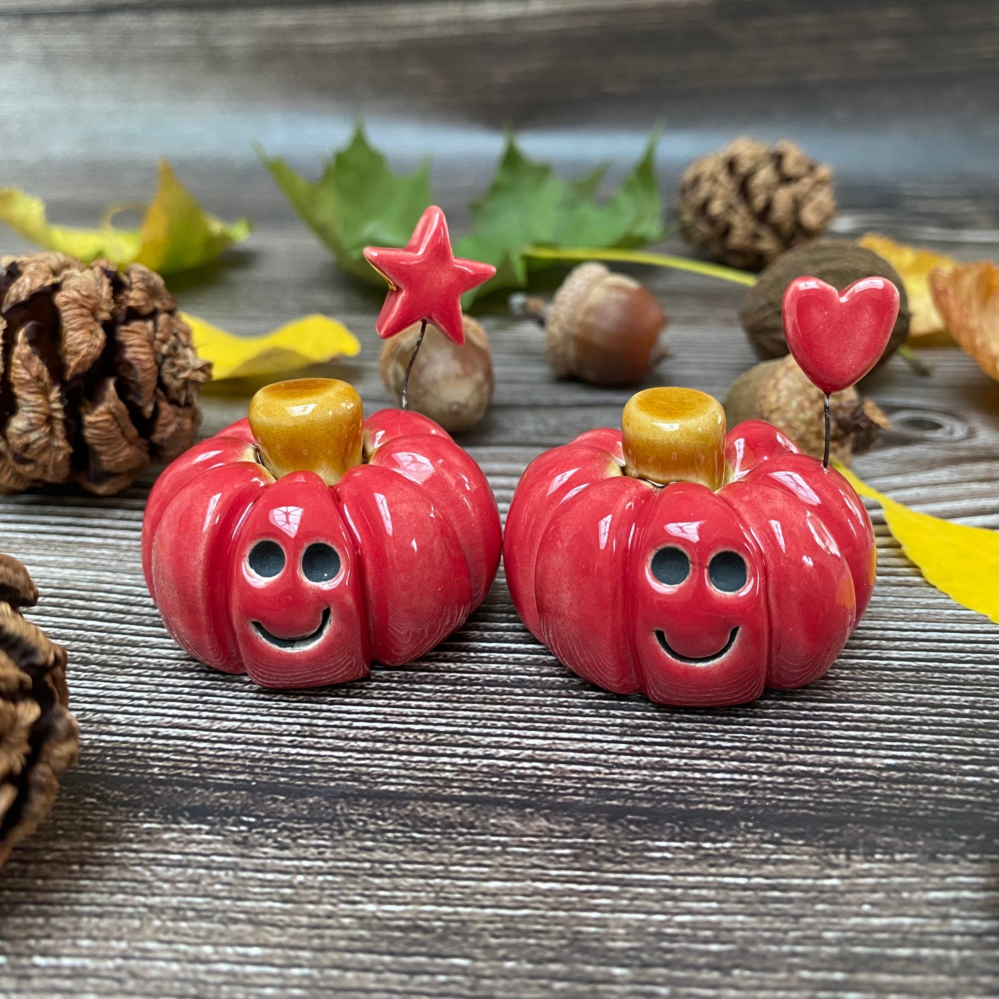 Handmade Red Ceramic Smiley Pumpkins - Star/Heart