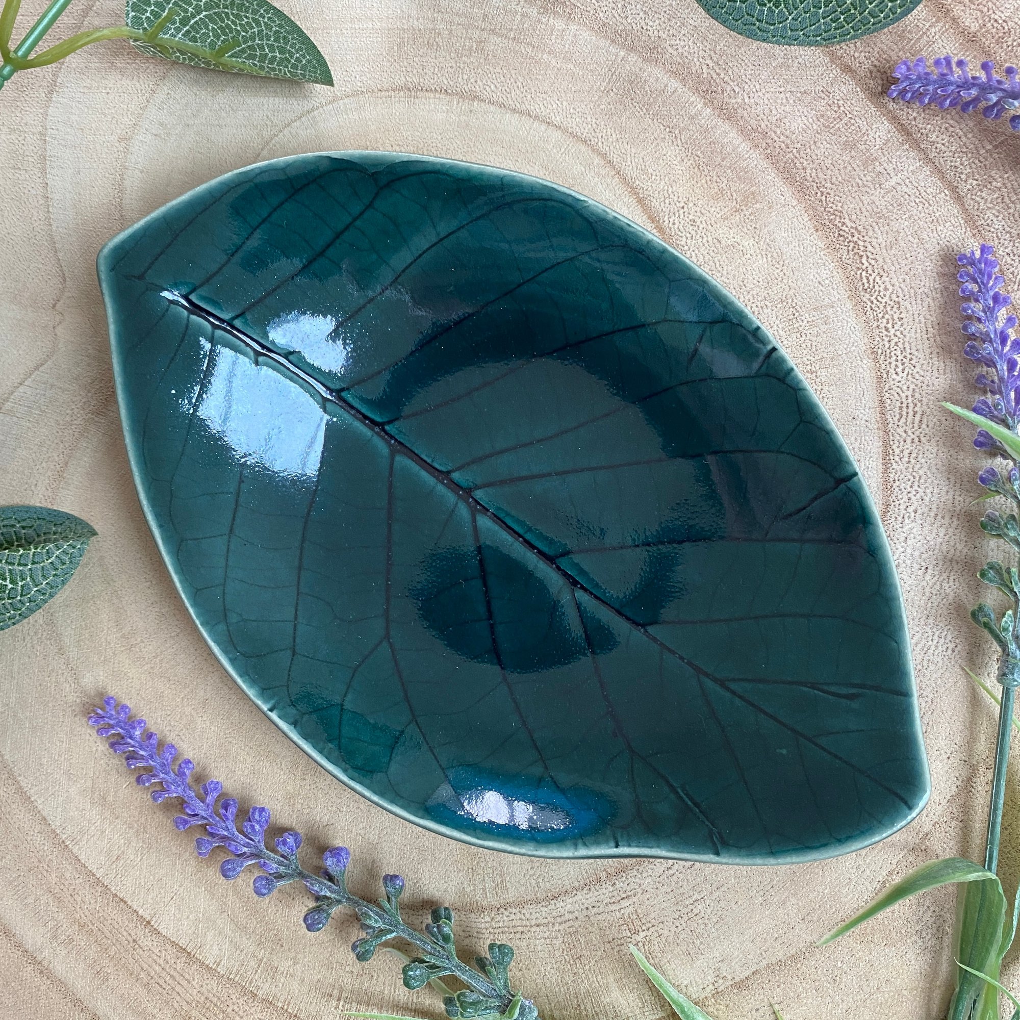 Large Green Ceramic Leaf Dish