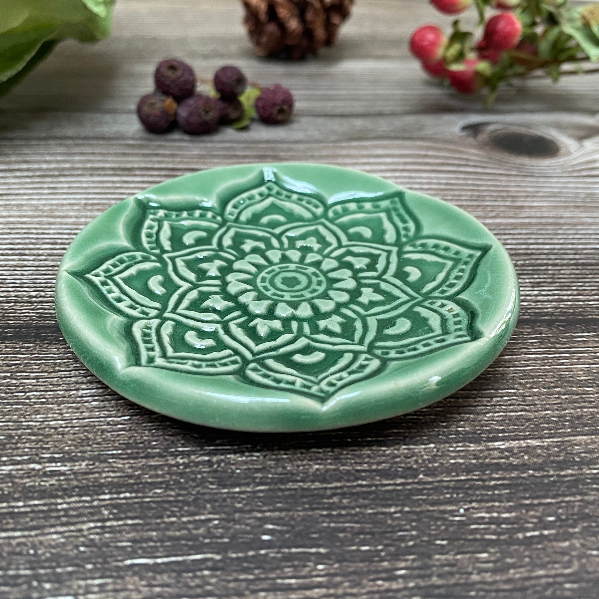 Soft Green Ceramic Mandala Trinket/Ring Dish